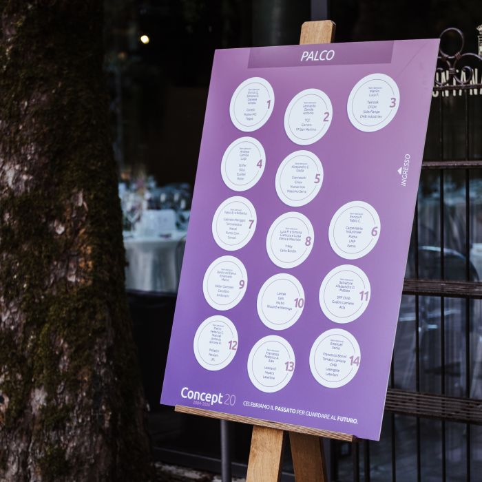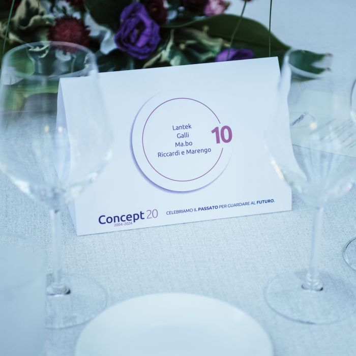 In occasione dei primi 20 anni del software Concept, Azerouno ha organizzato una grande festa. Studio del logo celebrativo, invito, grafiche varie dell'evento (tableau, segnaposto, ecc.), foto e video della serata.