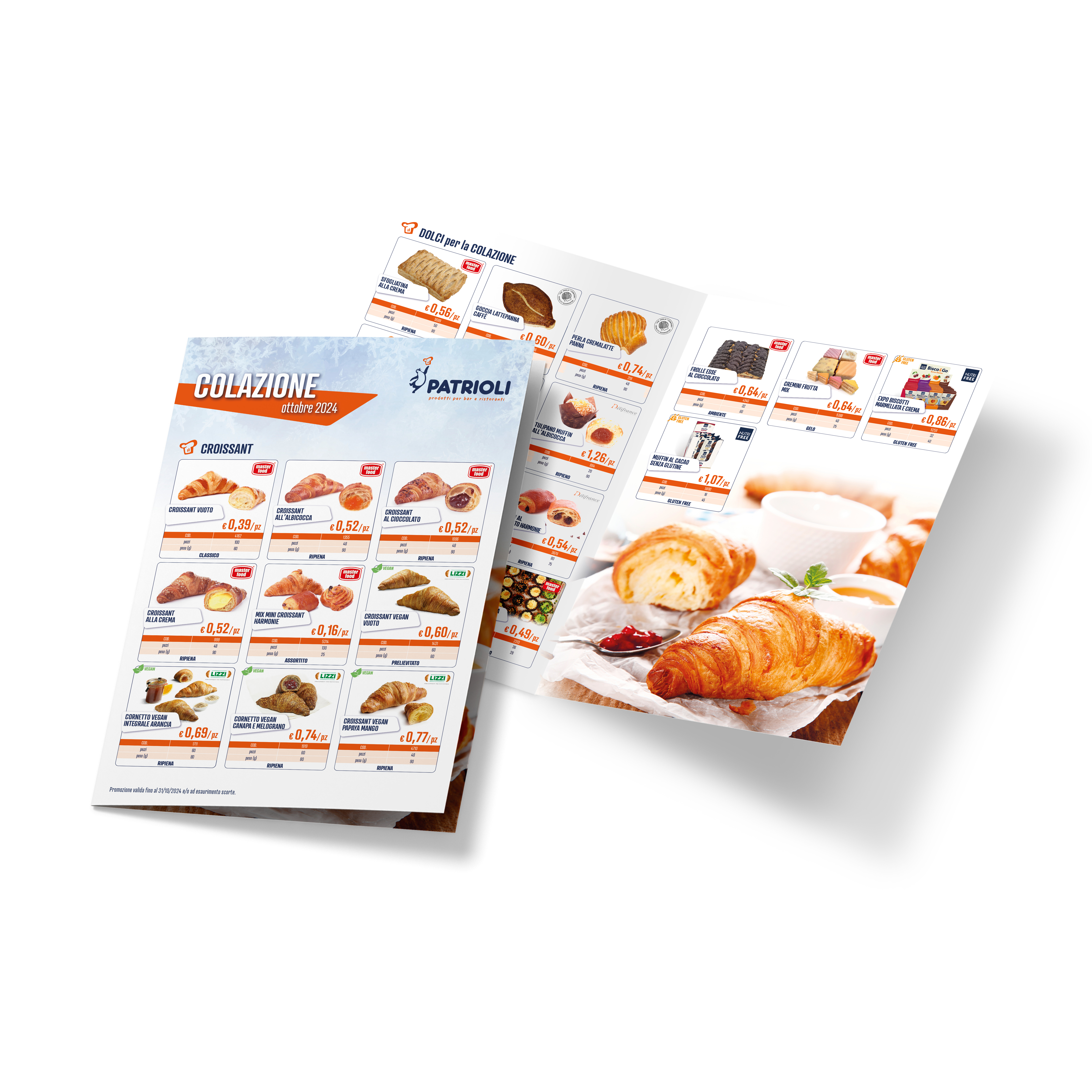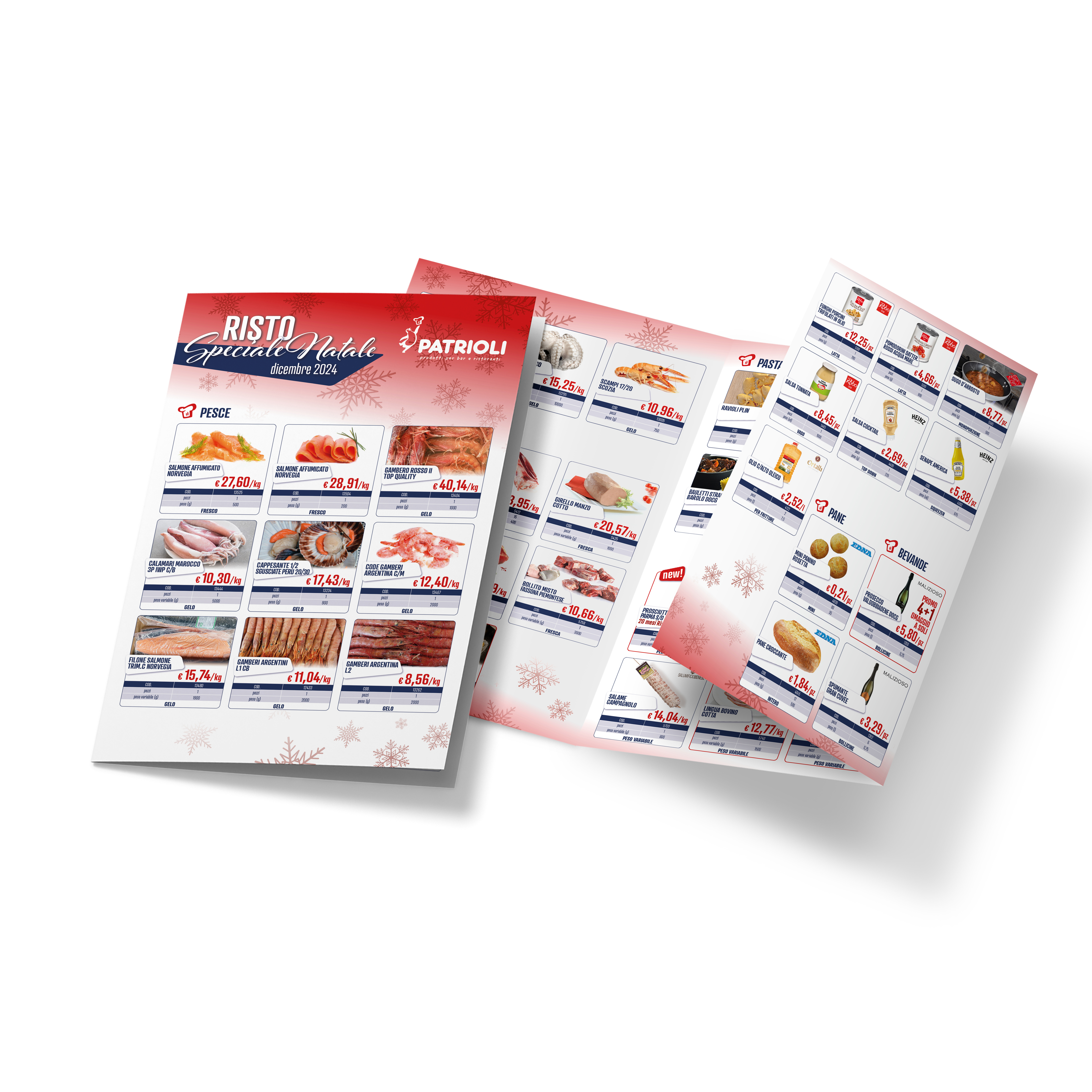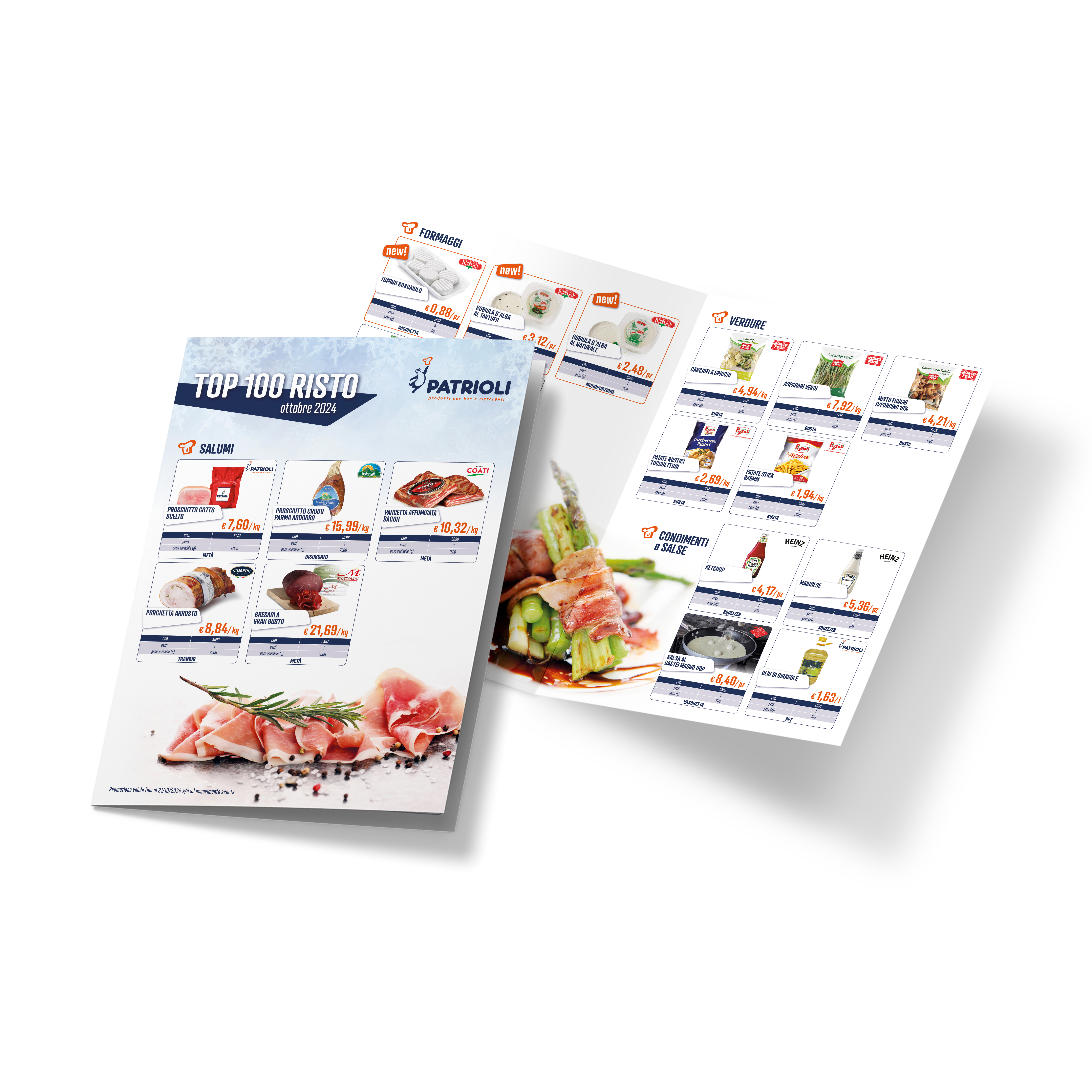 Restyling grafico completo per i nuovi volantini Patrioli Food, che mensilmente propongono offerte e novità per bar e ristoranti.